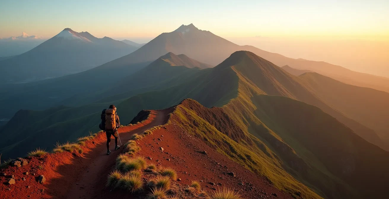 La grande traversée de La Réunion par le GR R2 est bien plus qu’une randonnée, c’est un mythe qui habite l’esprit de tout marcheur aguerri. L’idée de relier l’océan Indien du nord au sud, de franchir les remparts vertigineux des cirques de Mafate et Cilaos, et de fouler les paysages lunaires du Piton de la Fournaise est une promesse d’aventure absolue. Beaucoup de randonneurs confirmés s’y lancent, forts de leur expérience en métropole, pensant qu’il suffit d’être en bonne condition physique et d’avoir un bon équipement. C’est l’erreur classique.